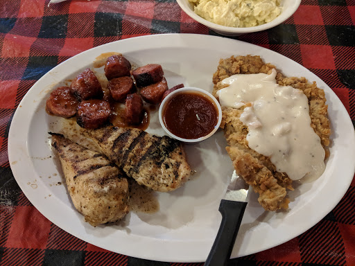 Ive eaten here several times and it was very good. Went last night for a friends birthday celebration and was very disappointed. The lady taking orders was very nice. After being seated there was no service. No one tell about the fruit flies in the salad bar. I took my son upstairs to look at the antiques and there was broken glass all over the floor. The chicken fried steak is great but it seems like the current management couldnt care less.