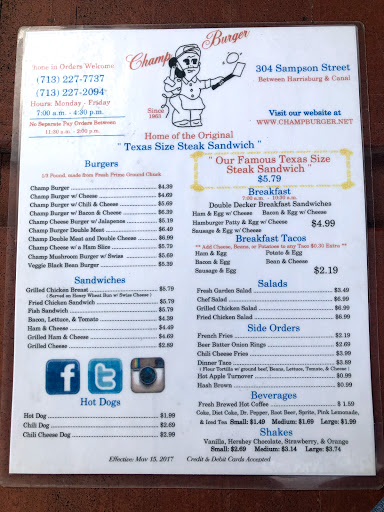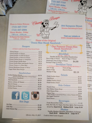 This is probably the best burger east of downtown Houston. This is one of the few times where a meal is good, fast, and cheap. Maybe not good for you but definitely good to you. If you want a pick me up breakfast stay away from chain stores and head over here to Champ Burger. The breakfast sandwich is top notch. If there was a reason for me to be anywhere on the eastside this is probably where Im having lunch.