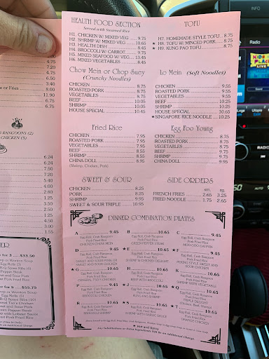 From the outside and the location of China Doll, youd probably turn around. But trust me, youll want to eat here. Its authentic! & very very very tasty! The prices are great and two people can eat just under $40, depending on what you order, that is. I order the chicken chow mein, it was yummy! And my fiance ordered generals tou chicken, which was really tasty! The employees were very sweet and polite. I appreciated every bit of it. This is a must go! The building seems a bit old, but if you ask me, youre not there for the atmosphere, even though its a plus, its the food youre there for! My pictures are of the actual menu, I apologize for how they are turned, if not readable Im sorry!:[