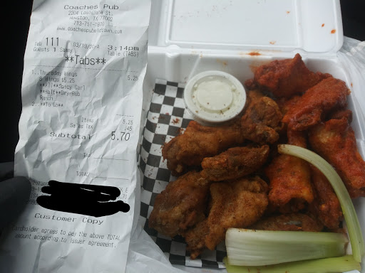In Houston for work and looking for some bar food and college football. Coaches delivered on both. Reasonable pricing on food and drinks, good service, parking directly in front.