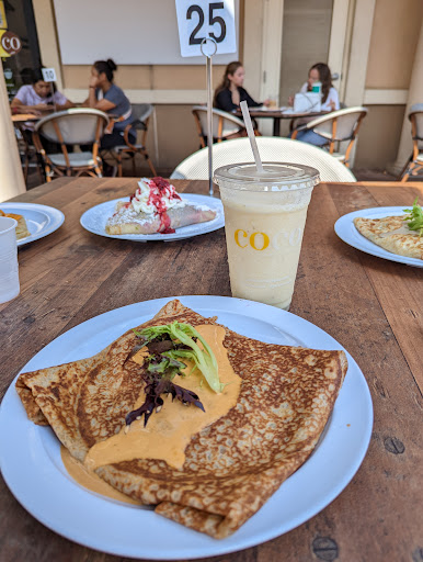This review is of CoCos at Vintage park. This place has really tasty crepes. I usually get the savory crepes, so dont take my rating based on the sweet crepes. If you like salmon, you have to get the salmon crepe w/ the basil sauce. IT IS PHENOMENAL. The sweetness of the crepe, the capers, the red wine vinegar, it is just amazing. I also love the Moroccan sausage crepe. A friend just had the ham and cheese thinking it would be ok, but once again cocos dazzled the taste buds. They are crepe making wizards.