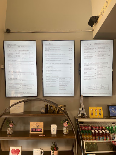 My wife and I stopped into CoCo Crepes in Indian Springs Shopping Center yesterday for a dessert date. The delicious smells and bright, clean, warm environment welcomed us into the cafe, as did the friendly staff behind the counter. The sweet and savory selection of crepes and other offerings was much larger than expected, and made-to-order with ingredients on hand was an exciting offer! I ordered a White Chocolate Raspberry crepe, and my wife ordered a Creme Brûlée crepe. We were both very pleased with both the delicious taste and beautiful presentation of our selections! Both the owner and the staff went out of their way to make us feel welcome and to make our experience there enjoyable. We will make this little cafe a regular stop and recommend it highly!
