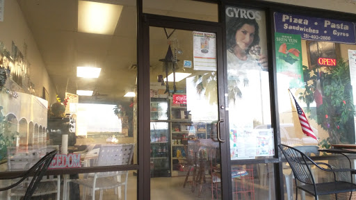 Great pizza. Fresh ingredients & plenty of flavor. Blows the chains away The meat-lovers pizza is good enough to convert some vegetarians. They also have sandwiches, muffulettas, lasagna, spaghetti, ravioli, salads, cheese cake, etc. There are a couple of tables in the restaurant where you can eat, but primarily its a delivery place. Im not sure where the other reviewers frozen pizza reference came from. If you want to verify the freshness just order a pizza at the restaurant and watch George prepare it with fresh ingredients right in front of you. The price seems reasonable to me as well. Everybody has their own opinion I guess.