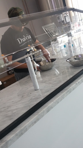 This place is amazing! When we first walked in, we were immediately greeted by the friendly staff. The ordering process is super easy. Dulcia uses Ipads that display all the flavors and toppings in a easy to read format. I opted for the strawberry with a freshly cut banana. My husband got the butter pecan with almonds and oreo crumbs. The coolest part was watching them make it. Dulcia uses liquid nitrogen to freeze cream and to form your ice cream. You can watch the whole process from outside the glass. It was awesome!!! Our ice cream was delivered and the presentation was great! I knew before I was going to enjoy it before I took a first bite. The ice cream was sooooooo good! You can honestly tell the difference between fresh ice cream and ones that are not so fresh. Dulcia is definitely the former! The owner was extremely friendly and came and talk to us. You can tell she is passionate about her business. The store itself is in a great location. It was busy when we came, but there was plenty of parking to accommodate the crowd. The interior feels really classy and intimate. The decorations makes the space feel upscale and the colors go really well together. We will definitely be coming back. My one critique is that they should have a points system. Im the type of person who likes coming back to places I enjoy. Being rewarded for loyalty is always nice. 5 Stars!