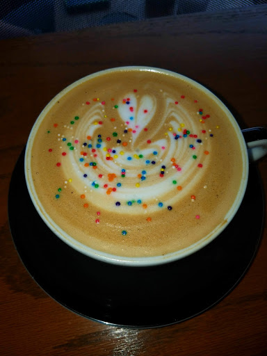 Loved the vibe of this place. The set up, the decor, even the music was great. Tons of seating, a little close together, but ample options. Music was coffee house with a little extra something. Only shortcoming was the amount of time it took to get my Honey Lavender Latte. The wait was a bit excessive, like 10 minutes or more. There was only one guy working the bar and register and that was pretty horrible. I order a cookie and latte and was done eating the cookie long before I walked up to remind the barista I was still waiting for my latte. Overall, the Honey Lavender Latte was good, but Common Bonds is better. It was more like a Honey Latte with a Lavender flower design on top. Still a pretty cool coffee bar, nothing special.