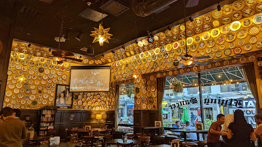 The number one place to get craft beer in Houston, with 70-80 on tap and over 100 in cans and bottles. Also they have a few wines and a full bar for those who dont like beer, though they are missing critical ingredients to make most cocktails. The draught list is constantly changing so you can find something new every day. Cheapest days are Mondays (when 2/3 of the draught beers are $3) or Sundays (when the Texas draught beers are $3). Tuesdays have trivia, Wednesdays have special flights (basic flights are available every day), and Thursdays have rare beer releases. Service is generally excellent, though occasionally the waitress is inattentive/disinterested or just plain absent. All staff are well trained on beer knowledge and can give good recommendations and offer tiny tasters to help you decide. Food is decent by bar standards, though perhaps not as competitive as it used to be, with the best selection of German food inside the loop (dont miss the soft pretzels or the bratwurst, though unfortunately some of the best German items have been removed from the menu -- RIP the once-excellent German potato salad and beer cheese soup). Also theres typical American fare such as nachos, chips/salsa, and pizza. They even have some vegetarian options that I regularly order as a non-vegetarian, namely the excellent Hippie Hollow (pita with hummus and vegetables inside, along with jalapeño dressing). No burgers as they have a limited kitchen. For repeat customers, they have a membership program that gives you a magnetic strip card and a T-shirt for $18, so you can track your beers. After 200 unique beers you get a plate ("saucer") on the wall with your name on it; along the way youll occasionally get discounts as well. As someone who works across the street, this keeps me coming back time and time again. The place can be unfortunately loud and is frequently packed in the evenings, though the loft above the bar and back hall are more tolerable. Its possible to rent out the loft for private parties, though that entails a fairly substantial minimum purchase. The only bar games are a couple dart boards. Part of a small (16 store) chain across Texas and the Deep South.