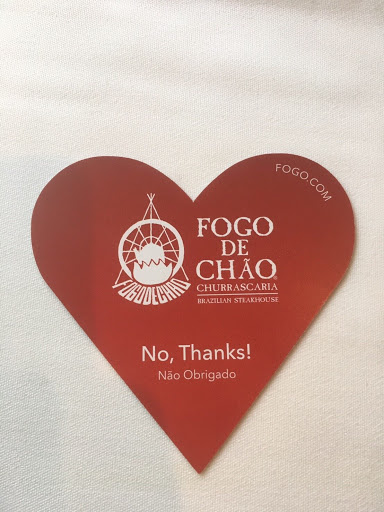 MMMM MMMM MMMM. First off, I have to begin by stating that Im more of a side dish eater. Dont get me wrong, Im not a vegetarian and I do like meat.....I just get distracted by carbs and cheese and things of sort. So.....when my employee selected Fogo for our company holiday luncheon, I was excited, but not as much as I should have been. I was like.....Fogo....oh.....I heard thats a LOT of meat! AND.....it was a lot of meat. BUT....I loved it! Our group was very large so we were instructed to go to the "salad" bar by table...and our table was the last to go. After about 10 minutes of waiting with no hope of going to the salad bar within the hour, we gave up and asked a gaucho if we could start with meat. What a fantastic idea! Well....I kept forgetting to flip my card from green to red; so, I was continually presented with more meat. Before I realized it, there were a few pounds of meat on my plate. I feel bad for starving people in developing nations; so, I clearly had to clean my plate. The thing is that even without sides and a never ending pile of meat on my plate, I was delighted. My mouth had reached nirvana and my mind was being reincarnated. I can honestly say that of all the meats I had, they all were prepared and seasoned in a fashion that made them delectable and I never once desired anything else. Which turned out good....because I never made it to the salad bar:) The only negative feedback I have is that cuts of lamb that I was served were both dry and almost if not actually burnt. Other than that, I had an outstanding experience and will definitely be back.