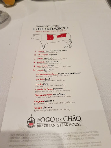 We came for a birthday looking for a nice dinner, loads of meat, and a unique salad buffet. Well, well just say, we werent left wanting on the meat front. The main objection is that despite the $50/person price tag, the dining experience felt like one in a Chinese buffet. The tables were so close together, you couldnt help but overhear your neighbors conversation and to get to the salad bar, you had to weave through tables like a labyrinth. Perhaps it was just too busy for our tastes on a Friday night and other nights are less crowded. We were just underwhelmed by the fast casual feel of the dining experience. The food was quite good -- lots to choose from on the salad bar and the meat was prepared well. The beef was excellent, chicken and lamb just OK. The lamb chops we had were over-salted though tender and the chicken was overly smoky. Stick with the beef! Especially amazing were the ribeye and filet mignon (surprise, surprise!) The salad bar had a good variety of veggies, charcuterie, prepared salads and a section with hot fish, rice and beans. Lastly, they also bring out cheese bread rolls and sides to each table -- sweet plantains, fried polenta and mashed potatoes. All are excellent. So in a nutshell, I would not recommend this place for a date night. There is nothing romantic about sitting too close to your neighbors and stuffing your face with unlimited meat that you dont even have to lift a finger to have deposited on your plate. It seems like it was pretty popular for groups though.