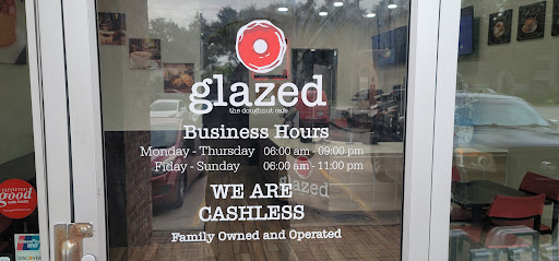 Being one of the new specialty doughnut shops in town, and a 24hr one at that, we decided to give Glazed a try. They have a good selection of specialty doughnuts some of which change daily. We tried the Cheesecake (my personal favorite), Creme Brulee, Toffee, and Dirty Zebra doughnuts. All of them were delicious! We had to wait a bit for the Cheesecake and Creme Brulee to finish, but they were well worth the wait. I actually cant wait to try the others on our next visit. The shop was small and clean with a clear window to the kitchen so that you can watch the doughnuts being made. Some of the things that could use improvement, which is why I gave them only 3 stars, are there following: - Coffee was not readily available, especially for a 24hr doughnut shop, we were done eating by the time my coffee was ready - When I finally got my coffee it wasnt even hot - The sugar for the coffee was in an open coffee cup instead of a proper sugar dispenser - A better display for the regular selection of doughnuts on the menu on the wall above instead of the clear little display. Reserve the small display for the doughnuts that change daily. It was a little difficult trying to figure out what was available and what the doughnut was called - Improved customer service at the order counter. I was having a little bit of difficulty getting my order placed correctly. Im sure the cashier was new, so that could be understandable. In the end I certainly enjoyed the doughnuts and Im sure that after a little more time, things will flow more smoothly. Im definitely coming back for more.