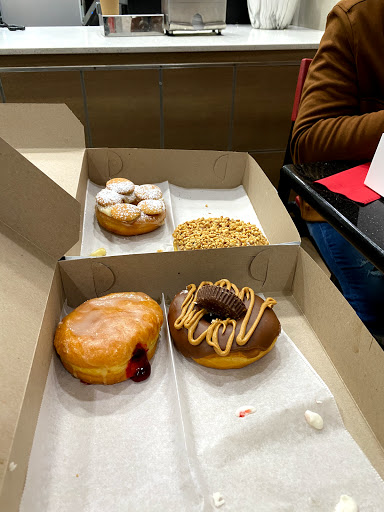 I was there last night for the first time as this place was recommended to me. Its a 24 spot which totally enables those who have health and fitness goals but no self control. When party of 3 arrived there was no line which was great. We approached the counter. There was a gal behind the counter who was preparing an order for another customer. She clearly saw us. We were standing there for a couple of minutes and was never acknowledged. I dont expect to be served right away but at least acknowledge your customers and say youll be with them in a minute. Finally she acknowledged us. One of my party placed their order online. She checked with the manager or a coworker and apparently the order was never received due to a faulty ordering system. So we had to place her order in person and wait a little while because one of the items was not ready on the rack. When ordering, you can either order what you see on the rack and get your donuts immediately, or order something else and wait. They place each individual donut in a box. Now dont get me wrong, the taste of the donut was great and the quality of products was great too, but due tot eh price of the donuts, I could not help but feel like my money was paying for individually wrapped boxes. It make the donuts visually appealing, but I am not sure that it is necessary. If you are buying multiple donuts to take home, you end up carrying out one box for each donut...and no, they do not have bags. The size was big and the taste was delectable. Filled my late night sweet cravings. I would go back but probably only for special occasions due to price and location. If I want a quality donut there are plenty other places to go, but if I was something different and delectable, this is the place to go.