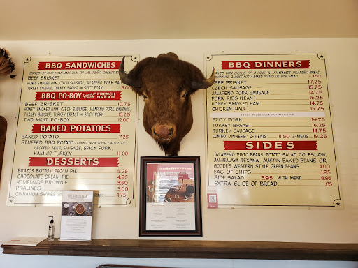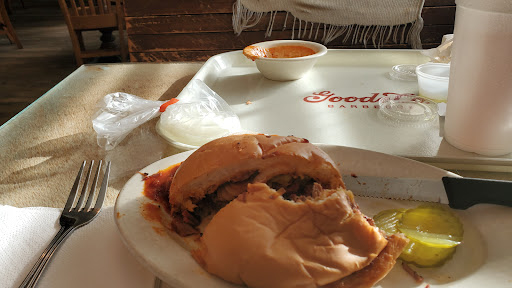 I must have been in Texas for approx 9 months when someone told me to go and try some bbq and to try Goodes. I had never eaten in this style of restaurant before, so was a little shocked at selecting a plastic tray and joining the canteen style queue... and I think my wife was quite surprised as I had selected this place for our date night meal... However, all was not lost as the food was pretty good. meat was good, sides were ok and not bad value....I would probably go again. Maybe take the kids and let them look at the massive stuffed animals.