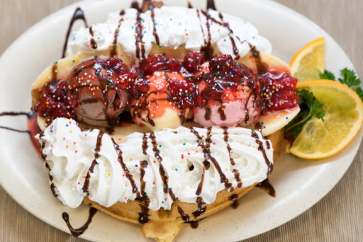 The waffle is great. There are a lot of options for add-ins. I had mine plain, but my friends added nuts. The chicken skin was crispy and well seasoned and piping hot. Our waitress was very nice. The kitchen is a little slow but your food will arrive warm. Dont order the malt. It lacks the depth of good ice cream and there was no malt flavor. Its pretty, though.