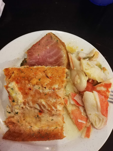 Unlike tv commercials food is not as shown. Very little seafood. Seafood tasted old, cold, and extremely greasy. Before going i called to ask for price on a 3 year old child price for buffett. He said it was free. Then once we came in and recieved the check they charged us 4.99 for child buffett. I took it up with the manager and he said he did not understand english-lies!!!!