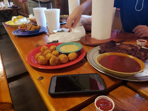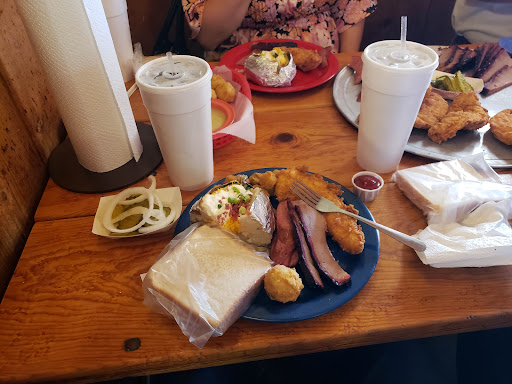 Not worth it. Well.... what can i say... wifey and I saw this restaurant recommended (4.1/5) by Google maps. First error. I should have checked Yelp before going there. Anyway... we order a loaded potato and a 2-meat platter. (Ribs and chopped beef with corn and fries).. the potato was bland, it was not hot, the melted cheese was dry... it seems that the potato was sitting on the counter for a while... like 2 hours or so. Move on to the platter... ribs. Nice size but also dry, tasteless, so I decided to dunk it on the available BBQ sauce... uggghh... it was a blend of vinager and some ketchup, also a huge miss. The chopped beef looked like dog food. Even the smell of my dog food is more pleasant than this one, another miss. Fries are the only good thing here, hence the 2 stars. Ah.. and it was even pricier than Rudys or spring Creek. Conclusion: We are not coming back.