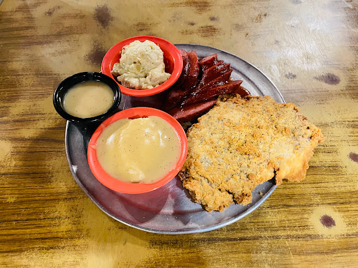 Great value BBQ. Self-seating and serving. Chicken fried steaks are some of the best in town. The gravy is a thicker, yellow type so be aware if you are expecting a more traditional white gravy. Its great on the potatoes. My 10-year old loves the mashed potato bites because they are spicy and I love the grilled zuccini as a healthy choice over starchy mashed potatoes or fried options. I frequent the Fallbrook location but I have visited the Heights and the experience is the same.
