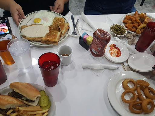 My daughter and I recently relocated here to Houston from California. Considering there are plently of eateries to choose from, this one isnt that bad. For whatever reason, every time we go there is barely anyone in there. The menu has a nice variety of tasty food selections and is quite reasonable. The waitresses are friendly and efficient. My only problems are it isnt the most pleasant looking and I didnt like the waitress sweeping the floor while we were sitting there eating!