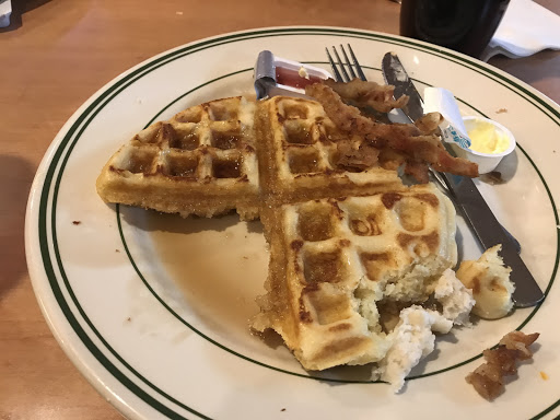 Should of went to Waffle House. Living in Houston for 30 plus year I have experienced the best and worst this city has to offer. Please trust me when I say this is the worst! From the moment you walk in you get the feeling that no one wants to be there. The waitresses seem almost ashamed of the food. Not once were we asked how the food was. Well let me tell you it was gross. I got a bacon and Swiss omelet with home fires and biscuits. The omelet was way over cooked and had absolutely no flavor, half the home fries were underdone some were even a little cold in the middle. The biscuits were obviously microwaved, rubbery and wet on the bottom from being defrosted in the microwave. My wife got scrambled eggs with sausage and bacon. Again no flavor from the eggs. The sausage was black on the outside and luck warm at best in the middle. I just hope that people visiting form out of state or over seas dont judge this great city and its wonderfully diverse cuisine by this poor excuse for a dinner.