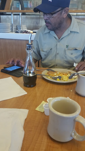 Food is great but some waitresses there have SERIOUS SMOKING ADDICTION. One usually goes out to smoke at least twice during time it takes me to eat my food. Then she cant take hers eyes off cell phone long enough to be my waitress. When not texting shes at table talking on phone. 5star breakfast buffet at good price. 3star waitress who really needs some Nicorette. Many other options as well for breakfast, lunch or dinner, nice waitresses, very close to Bush Iah. Try the eggchilladas!