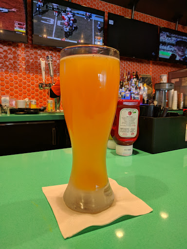 I had a beer and a mushroom chicken sandwich with fries. The beer was cold, the fries were hot and crispy, and the sandwich was tasty.