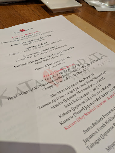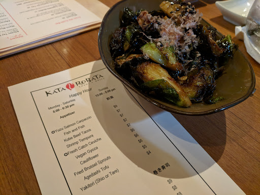 I had been here for the first time EVER a few weeks ago. I was really excited to see what the hype was about and let me say I was a bit disappointed. I was expecting a really chic atmosphere and it honestly fell FLAT! Not to mention the service. I believe it took the waitress over 15 minutes to bring me a drink and Im not even going to get started on the cocktails. No maybe I will, they advertise this amazing champagne drink. I believe it was supposed to be infused with hibiscus. Darling it tasted like something that was poured out of a 5 dollar bottle of Asti Spumante, not to mention the drink alone was 12 DOLLARS. When I finally got my food, I was pleased with it. I ordered unagi which was tasty along with a roll. I cant remember the name of the roll but I know it was infused with truffle oil. It was very delicious. It was my first time at Kata Robata and I can surely say it will be my LAST time there :/ Save your money and go across the street to Sushi King, or even better and cheaper than both those places...go to Miyakos!!!!