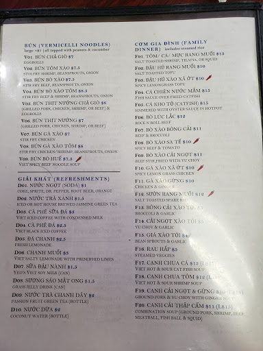 The food is OK compared to nearby few other Vietnamese restaurant, the interior is a bit beaten up, stuffs were piled up around the counter area, not very clean looking. after finishing the soup, my throat got itchy and rough, I guess it was the over-loaded MSG. Most dishes is from $7 to $12, not too bad for a quick bite.