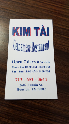 I went to Kim Tai Restaurant on a Sunday afternoon with a friend. We were on the hunt for a beef noodle soup (pho) in the Midtown area without having to travel all the way to Chinatown. Its located in a beat up location on the corner of McGowen and Fannin St. beside Leons Lounge. There are not big signs to find it, and the place looks totally run down from the outside. They are currently doing repairs on the roof (March 2016), so hopefully it will start to look better in the future. They do have a few spaces out front to park, but these are usually full. You can find some street parking nearby. The inside is quite small and stuffy. We were seated at our table and started with the Banh Bot Chien (Fried Rice Cake with Egg) for $4.95. This is very similar to Tan Tan Restaurants House Special Rice Cake, but the rice cake was much more crispy here. It was still good though. Overlooking the menu, Kim Tai serves much more than Vietnamese food, including burgers and fries at very cheap prices if youre into eat American food at Asian restaurants... I went with the Pho Tai, Chin Nam (Noodle Soup with Steak and Brisket) for $6.95. What I noticed right away was the meat was cut quite thick and tough. They only had one size, and I do have to say there was a lot of clumpy meat. It was okay, but I wouldnt come back here for their beef noodle soup. Pros: -Friendly Service Cons: -Meat in their pho was quite thick and clumpy -Location is very rundown, but they are repairing their roof currently (March 2016) -Private parking lot is limited, may need to find street parking