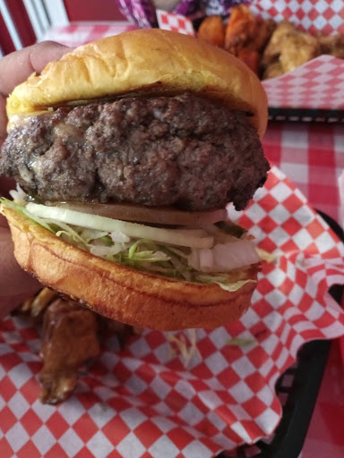 Where to start... Saw reviews on Google, decided to try for myself. Little hole-in-the-wall joint... Maybe 6 tables. Decided to order to go. Was a bit of a wait, even at 1:30pm. Glad I waited. 1/2 lb bacon,bacon,bacon cheeseburger for lunch that day, and since Im a visitor to Houston and didnt want to have to drive aroung looking for other places, I ordered wings to bring home for the next couple nights. 2 dozen Cajun & 2 dozen Garlic. Got home, sat down to eat, opened the burger and bout fell off my seat. It looked AMAZING! And tasted twice as good! Was all I could do to put it away, and Im a big guy. Think their scale may be a bit off... felt more like a full-pound burger! Sorry to say, there was no way I could eat the tater tots that came with it. The wings--- Well, 4 dozen wings didnt last 2 days. Couldnt stop eating them. Some of the best Ive ever had. Thanks for making my trip to Houston, and Ill be back before I leave, for sure!