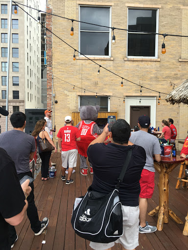 Nice rooftop bar in the middle of downtown. Great view in between buildings and of main Street where other bars are located on. Good music and sometimes they have live music playing downstairs. Lots of seating areas downstairs, a private reserveable area on the second floor and the roof top patio upstairs thats usually busy and crowded. Two bars, one downstairs and one on the rooftop