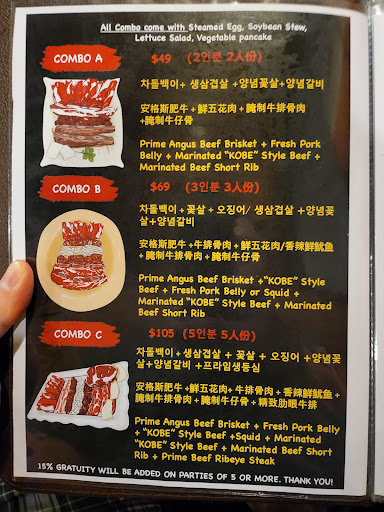 I have been here more than ten times already since they opened. They are always the best. Loved their friendly services, cleaness, and delicious food. Their services make you feel like at home. Its comfortable to sit on the sofa like seats while you are eating. Combonation of bbq also let me try different types of meats, such as thick cut of pork belly, marble beef bristket, well marinated short ribs. I am glad to discover this place at first time. BTW, its really busy at weekends, be patient and you wont regret ;)