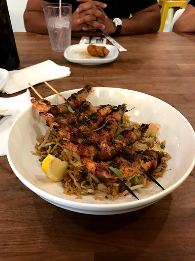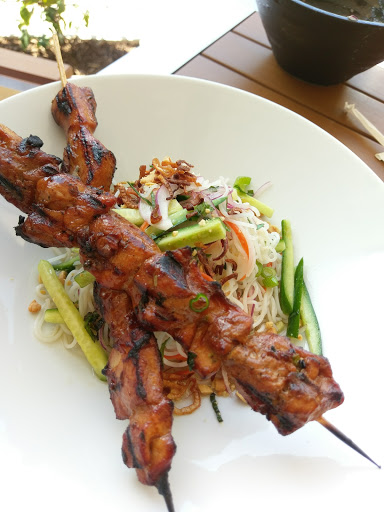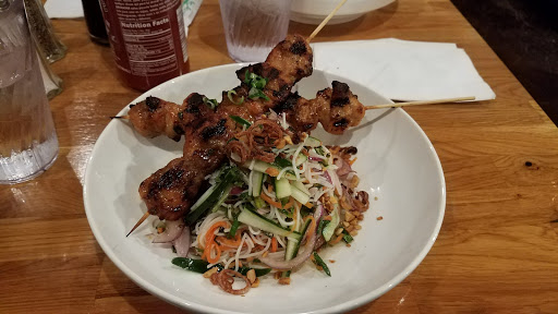 Had the pork belly taco which was fresh tasting due to the pickled onions and cucumber garnished with cilantro placed in crisp deep, not oily, flour tortilla. The Trung sisters dish of bacon wrapped broiled shrimp on top of a bed of shrimp fried rice was lightly flavored. The cool slightly sweetened garden vermicelli contrasted nicely with the skewered grilled chicken. Tofu topped with thinly sliced sausage was served with a mild sweet soy sauce. White walls with modern art were a pleasnt departure from the usual decor frequently encountered in Michigan asian restaurants.