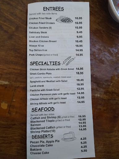 I have been going here for many years. (It was previously called West Gray Cafe before an extensive renovation. The menu is nearly identical with many nice additions) I really like the staff and everything I have ever ordered here. Breakfast is excellent at any time of day. They are good at cooking the bacon to order (crispy or not). The eggs, hash browns, pancakes, french toast, grits and biscuits are all good. Real butter is available at your request. Not a fan of the breakfast sausage - bland and texturally odd. The lunch menu has good burgers, good sandwiches and salads. The Shrimp po-boy is surprisingly good. The Gyros are good, too. The Dinner menu has excellent chicken fried steak and chicken tenders and a good shrimp platter. The fried Saganaki cheese appetizer is great. My favorite place to grab a bite in town. Great prices, atmosphere and food.
