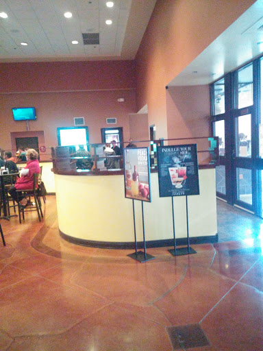 I have been here more times than I can count. It is kind hidden since its nested in the back of a shopping center but there are two huge signs that say MOVIE on them. if you cant find it youre either blind or not considering that it might be in the shopping center google tells you its in. The food is decent and I think a lot of people are expecting something ritzy from a "dinner theater" but really its just an average restaurant with a theater. I wouldnt brag on anything but the menu does have some decent choices. All together its nothing amazing but its much better than a choice of overpriced popcorn or stale hot dogs. The service is always different. Ive had some of the best service and the worst but never anyone that was downright rude. You just never really know how its going to turn out but that doesnt mean its going to be bad. If anyone ever has a seriously bad experience Id recommend just explaining it to the manager. The restaurant portion is nice but putting that aside, I love this theater! The actual theaters are small but the screens are proportionality sized. It feels like a cross between those mini-home theaters you see on tv and the regular theaters at other cinemas. You have the choice of either classic styled cinema seating with every other chair sharing a small fixed table or a bar style with loose seating and recessed lighting. If find it very comfortable and never had a problem with quality. If you prefer the bunched and crowded oversize theater experience though it probably isnt your cup of tea. Oh and they tea btw... hot and sweat. Try getting that from your standard showing.