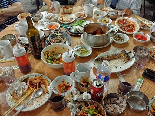 Spectacular. A bit of history. I think that I first wandered into this Korean restaurant over 25 years ago. No sign to locate it. But I was a serious ethnic food explorer in those days. Its lunch time and the clientele is all Korean. Not much of an English menu so the owners directed me toward a bibimbap which turned out to be delicious. On subsequent visits I just looked at what others were eating and pointed. Always good. My first introduction to Korean food. Over the years other places have opened as the Asian restaurant scene has moved farther out Bellaire and Bissonnet and also to Long Point. But for me, Myung Dong has a special place. I recently met up with 5 of my best male friends for an insane lunch there where we ordered and ordered and the food kept coming. Not a dud in the whole meal. It was just the owner and his wife, taking orders and cooking up a storm in the kitchen. It was like being in the home of the best cook in town. Well, they now have an English menu. But I wish I had taken more notes on what we had. So, I will just post some photos, particularly of the devastation left by us on this most memorable meal. Run. Dont walk to Myung Dong. It is that good.
