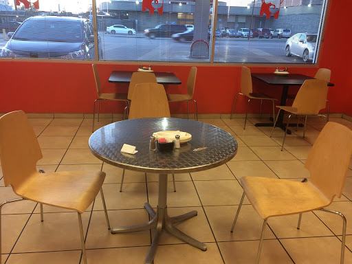 Dont get me wrong, the food is so amazing! I rarely go cause its downtown. I just left right now with my mom, because a homeless man was drugged and was dancing and shaking like if he had a seizure and was banging the restaurants windows. A man had him walk away.The other drugged person was lying on the floor outside, bobbing his head and shaking. Its scary because the other one was chasing people like if they were going to beat them up. There was another one in the corner of the gas station causing people problems. I felt very uncomfortable and scared so my mom and I left as soon as they were out of sight.