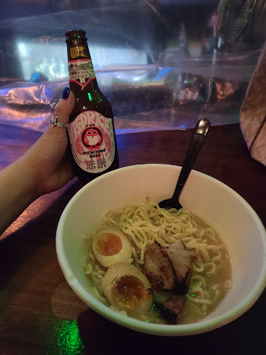 I loved the atmosphere and the staff was very friendly. The establishment is very small place when and its not much to look at when youre outside and easy to miss but I promise its worth it to go in and eat. We got there for happy hour and sat at the bar to thoroughly enjoyed our drinks. The bar tenders were a lot of fun and very knowledgeable. They had a tasting of one of their shots called "Go Home With Me" and it literally tasted like a chocolate covered strawberry. I prefer whiskey, and I must say that their selection was worth it. The food arrived quickly and was absolutely wonderful. I had the spicy ramen with extra egg. The broth was full of flavor and the noodles were perfect. The 1 bowl was very filling for me. They also give you a refill of noodles if you finish yours. I loved my food and will return without a doubt. My only complaint is the parking. Their lot is caddy corner to the actual restaurant. Meaning you have to cross Washington (which is usually pretty busy) with no cross walk. So you need to be extra careful. I cannot wait to go back. I have officially made this one of my go to spots, especially for late night food.