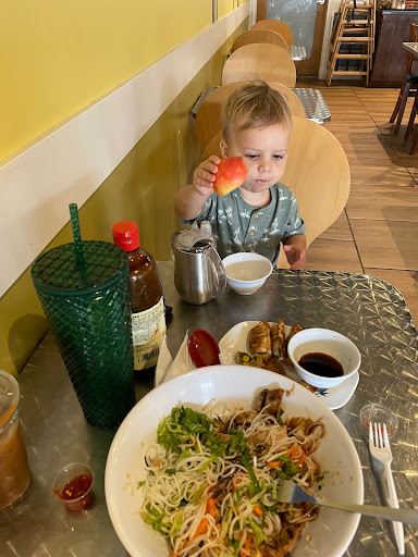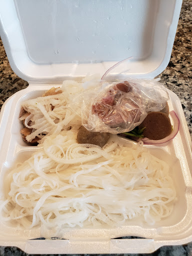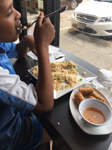 I love their food! Ive been going here infrequently over the past year since I started working on Eldridge. Their lunch lines really depend on the time you visit. It gets busy from 12 to 2 I guess so I go around 11. You can also order from yelp I think, or an app so when I think about it, I can get the food ready to go. I love their pad thai. Thats my go to for any Thai place. They used to have the option to have only chicken, beef or shrimp or all but now I see they just merged it all together. Sadly, I have to say I do not trust their shrimp. For me, it has had a really off taste every time I have it and I eat a lot of shrimp in general. So avoid that part. Their pho is also very very good. The best part is the broth, if its good, then your pho is 95% successful. Nice service, clean tables and theyre pretty fast when ordering in restaurant.