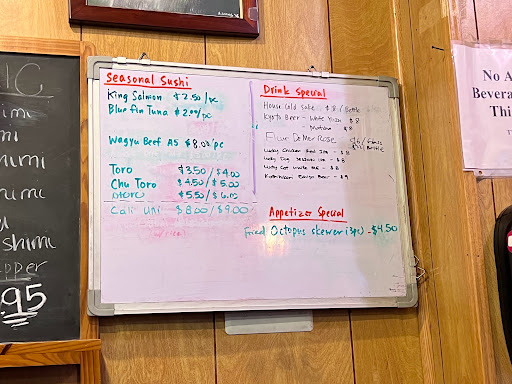 Wow! This place was my best sushi experience ever! It was my wifes birthday and she wanted sushi so I searched around for a new place to go. We have a toddler and only one income so we dont make it out often so anytime we do its a big deal to us and a bad experience at a restaurant robs us of one of our precious few outings. We had even tried to come here before but it was for lunch and we were early so the parking lot was empty except for a haggard car and occupant at the convenience store next door and it looked shady so we split. Our mistake. This place is a dive in all the best ways. If youre looking for a too expensive decor and house music this isnt the place for you. If youre looking for phenomenal Japanese food and service at reasonable prices then this is the place. Well be back again and again!