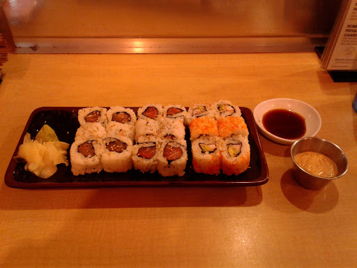 Damn shame I used to like this place. They had RAW Salmon in 6 containers out in warm temperature for over 2 hours and right above it was a sign that said "Our fish is kept at 42 degrees for freshness". Well they didnt follow their own sign. They were also uncovered and there were flies around landing in food. I was sitting at the bar and told one of the sushi chefs a fly landed on the food and even pointed at it. He didnt do anything but say "Oh ok". They also had a large amount of cooked tempura food piled on top of each other in different bowls that looked like it had been there for days and also some on top of ripped aluminum foil, next to the sushi chefs drinks, cups they were taking toppings out of and putting on food. Damn shame this place has gotten nasty. With that many employees you would think they would keep the restaurant clean. The sad part is the Manager/Owner is right there next to all of it and didnt do anything. The place wasnt even packed at 4pm and the wait staff was standing around gossiping and the service wasnt like it use to be. Its gone down hill. Even more odd is that the good reviews seem to be of people not really opening their eyes and see all the old food just sitting out behind the sushi chefs. I was going their a few times a week and thought it was an isolated issue but obviously not when seeing the same thing so many times. WHAT A SHAME!!! MAYBE THEY WILL WAKE UP AND CLEAN THE PLACE AND STORE FISH CORRECTLY!