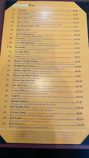 They were such nice people; I got several things on the house, just out of the blue. The sushi was actually really good. I was wary of eating at a strip center sushi restaurant, but it was cool! Its small, though, so dont bother taking a large group of people. Good for dates and small groups. Kind of pricey for sushi (around 7-14 dollars per roll [6-8 pieces of sushi]) but it was good.