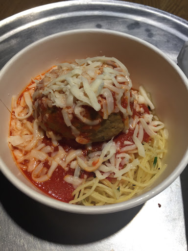 Quick and tasty meal, at a very fair price. Good selection of ingredients to build your own pasta. Marinara sauce was tasty, but a bit spicy for the kids. The grass fed meatballs were huge and flavorful (one per plate was more than enough.) The Italian sausage was delicious. The service was quick, living up to what you might expect from "street food" experience.