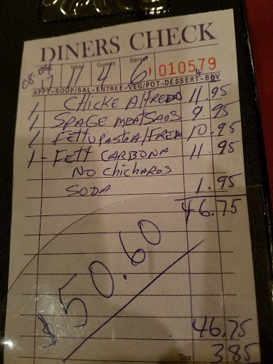 Wonderful food. My husband had the lasagna, which was comparable to what we ate in Italy! I ate the Fettuccine Carbanara, which was very creamy and delicious! Tiramisu is amazing too!