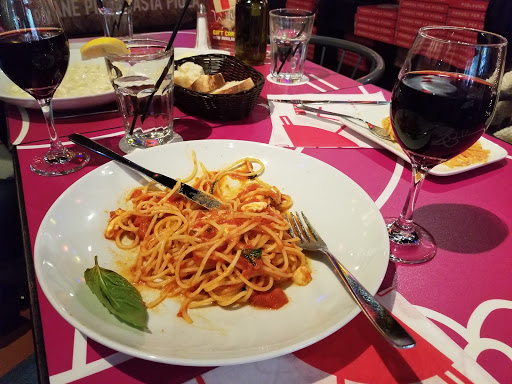 Me and two girlfriends ate here yesterday evening by accident. We planned to go to Raku, but I guess its closed...? Oops. But anyways, It was around 6:00 pm so there wasnt a crowd. The atmosphere is inviting and the decor is modern and vibrant. The server was friendly and fairly knowledgeable. We had the Firenze Pizza (mushroom and sausage), the Brooklyn Pizza (chicken, broccoli, Gorgonzola) and the Carpaccio. The pizza wasnt the best Ive had but I guess it wasnt the worst. I couldnt really taste the Gorgonzola and thats a pungent cheese. It tasted a little overdone on the bottom although it was flimsy. We each ordered the mango Bellini-those were yummy! In conclusion, I probably wouldnt get pizza again because I dont think its worth the $14. Maybe Ill come back for a drink and happy hour one day though.