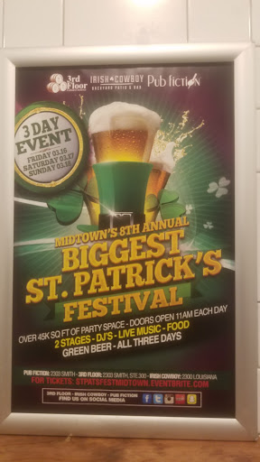Ive been I living in Houston for 6 years now and have come to learn that Pub Fiction is the most dependable bar for when youre looking to either have a really good time, or to just kick back, relax and have a few drinks. The management team is by far the best Ive ever met at running bars and restaurants. They absolutely know how to market to their audience, always having special events for anything worth having a good time for - local sports teams, St. Partys Day, Cinco de Mayo, and many others. While the crowd tends to skew towards the mid-20s, its still a perfect spot and very welcoming for any age. Ive brought my 58 year old father to Pub to have drinks one night. While he wasnt a fan of the non-stop music, he still had a great time. By the way, the food is pretty damn good for being Pub food. The owners have rounded up a fantastic menu crafted by talented local chefs.