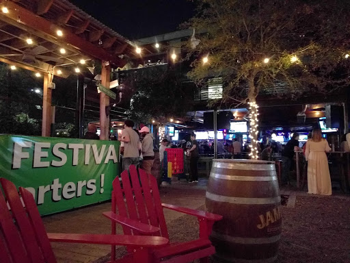 Ive only come here for drinks, never food. Pretty cool place. It has something for everyone. You can dance by the stage or chill on one of the patios. They also have some good live music from time to time. Halloween at this place was really fun this year. Everyone was good about dressing up. The place was packed and it spilled out into the parking lot too. They also allowed to walk through a hallway outside if you wanted to go to the bar next door. I believe both places have the same ownership. This kept you from having to wait in line to check IDs if you wanted to go the other place.
