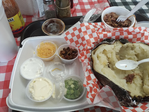 Be prepared to go broke!! This is the spot! Theyre what real bbq taste like! Everyone is friendly like family. Sausage sandwich is just right,and the baked potatoe with pulled beef is the best! Its big I couldnt even finish it and I am pregnant. Desert that banana pudding addictive!! I got it 2 days in a row.