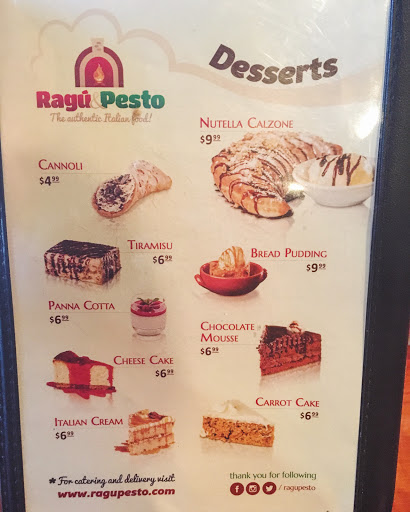 Has literally no vegetarian options, not so good service, laid back waiters coming at their own time and convenience. It has total of 9 main food options. Its name is Ragu & Pesto but none of its pasta has Pesto(they dont have Pesto altogether)!!!!