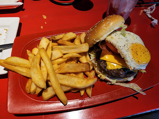 This location is not what it used to be. Food came out almost cold, they now give you tiny portions of fries on your plate, instead of the old style with baskets (which was much better) water tasted literally like dirt (soil). Side of fruit was tiny chopped up bits, instead of the old way, which was chunks. Floor and place just felt dirty. Male hostess was not wearing any deodorant, and that really ruined it. They should have kept the old decorations and style. The floors really need a mop and some bleach. They were grimy! Used to come here a lot, but this was my last time .