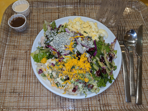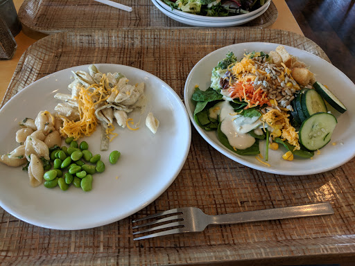 This place just didnt do it for me. My daughter really wanted to eat here and so we did. I thought it was over priced. Almost $30.00 for two salad bars, without a beverage. Yes the salad bar has many options and there are a number of hot soups and breads to pick from, but for someone who follows a low carb lifestyle, all I could really eat is salad. I paid extra to have steak on my salad, and they served it to me ice cold. I told them I would prefer it heated and asked that they heat it and the cashier acted as if it was a huge deals. The manager proceeded to give me a whole speech about how they were not responsible for the texture or flavor of the meat changing if they heated it. Ummm okay, its not that serious. I told them "look, if its that big of a deal, dont bother." They did end up heating it up though. Everything here was just mediocre, nothing made me say "Wow. what a great lunch, I really want to come back". On the salad bar they had a pear and candied walnut salad. You had to search for both the pears and walnuts with a magnifying glass. The one item on the salad bar that I really liked was the wedge salad and my daughter really liked the cheese bread. The highlight of my meal though, was finding a hair in my food. Just what Ive always wanted. It definitely wasnt my hair. It ended any appetite that I did have though. The restaurant was clean and inviting, I just wished the salad bar matched that. Overall, my daughter liked it, but if you told her to pick her last meal on earth to eat, it would be salad. I really have no desire to go back