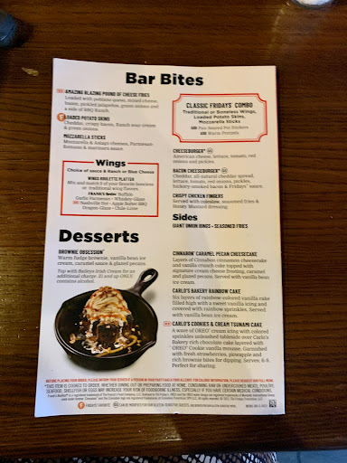 Went here with hubby for date night. Everything was great. Food was amazing and delicious. We tried the Jack Daniels sauce. Wish I could bottle it up and have it at home. Waiter was very nice and professional. The day we went was busy, but we were seated right away and attend very well. My only issue was, when we got there we asked to be seated at a booth. Right away we got one and I noticed it was a rather large space for 2 people. I said " Is there anything else available? I would hate to use up such a big space for us. I would hate to sit and then a large party show up. " The young lady who sat us down said in a rather rude way.. " Its this or nothing. " I said to myself wow okay..rude my bad for looking out for others. But I didnt let that effect date night! (in the voice of Harley Quinn - " Rude waitress youre NOT ruining date night! ") Anyways I definitely recommend the motzrella sticks and potato skins!! Overall I say 5/5 dinner was great. Thanks TGIF