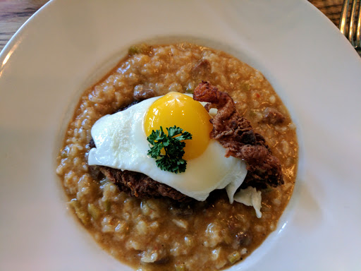 Service was crap! Umm yeah the only breakfast items I saw was an egg sandwich a blt and poached salmon and eggs. No French toast or anything that was posted earlier. Guy that initially greeted me was rude. I told him it was my first time there and after that his tone turned into sarcastic and impatient. I said Id like a breakfast cocktail and he said his bartender doesnt come in til 10.....and all he could make were high ball drinks and mimosas...I said ok great Id like a mimosas.....he never rung me up for it and I never got it. The scrambled eggs on rye is not as great as it seems..... its a glorified egg sandwich..... thats about $7.... nothing to it...Im fact Ive made better at home. The "water bar" was melted ice water that you make yourself. Thats crap. Also.... heres a biggie....it says it has a NOLA feel to it... ABSOLUTELY INCORRECT!!!! No New Orleans feel or vibe whatsoever.....not even the music! More geared towards confused businessmen and wannabe hipsters....an absolute fail for me.